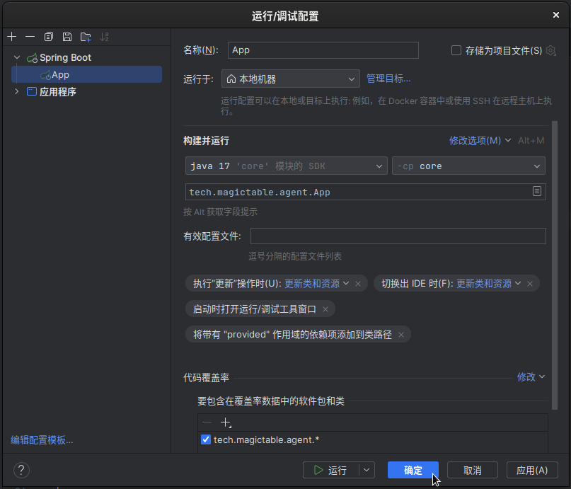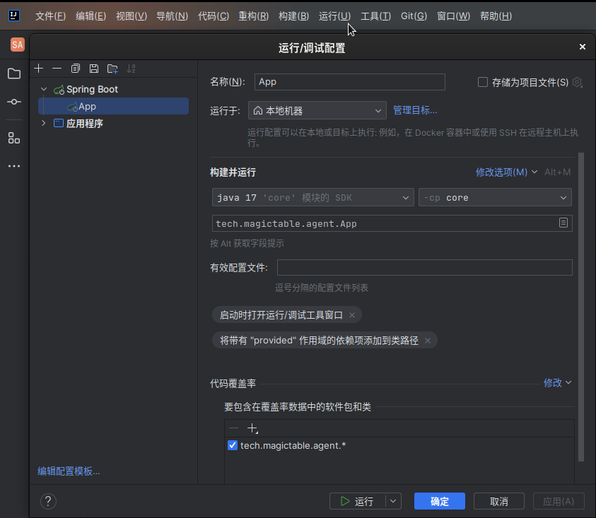 - 点击顶部导航栏中的“运行 -> 编辑配置”,进入“运行/调试配置”页面。