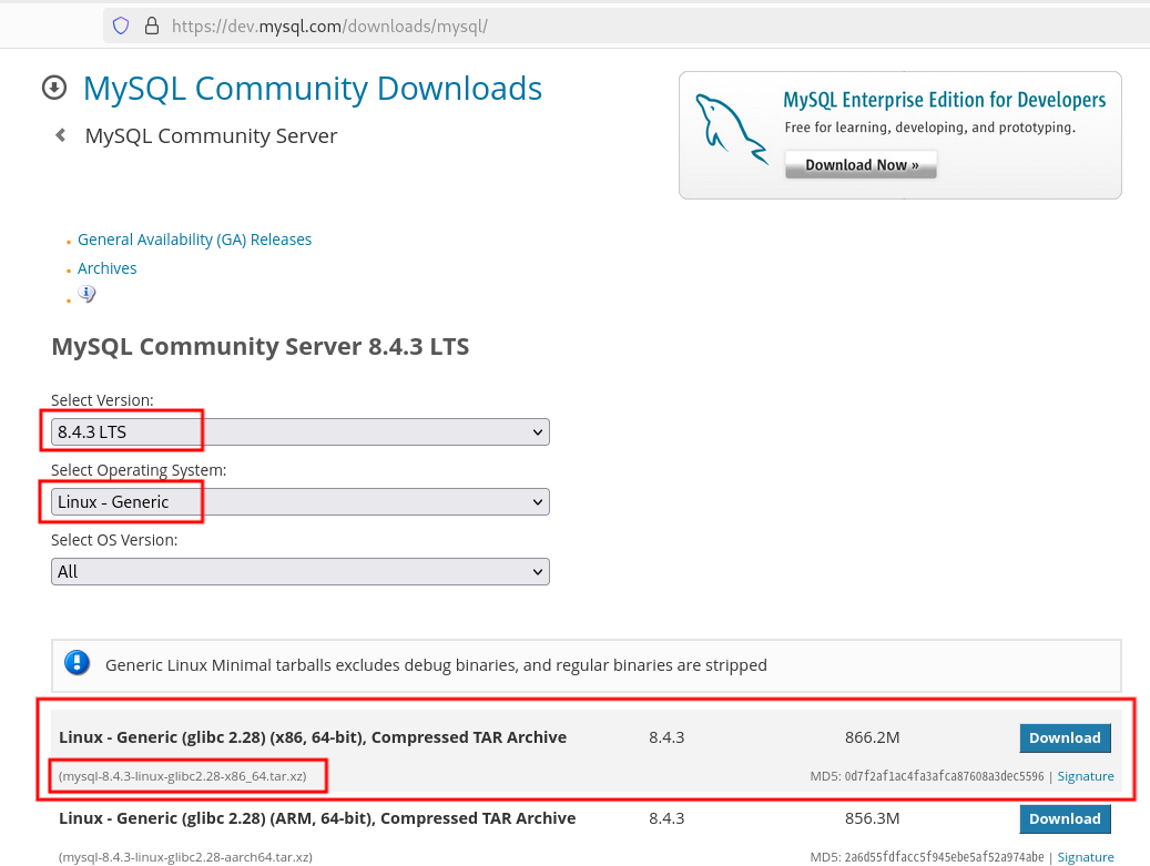 sudo wagt https://dev.mysql.com/get/Downloads/MySQL-8.4/mysql-8.4.2-linux-glibc2.28-x86_64.tar.xz